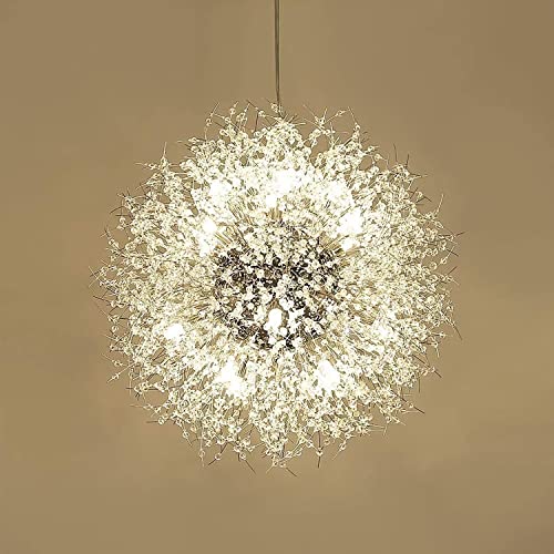 Kristallkrona, silver maskros, 9-ljus fyrverkeri ljuskrona för vardagsrum, matsal, köksö, G9 glödlampa ingår