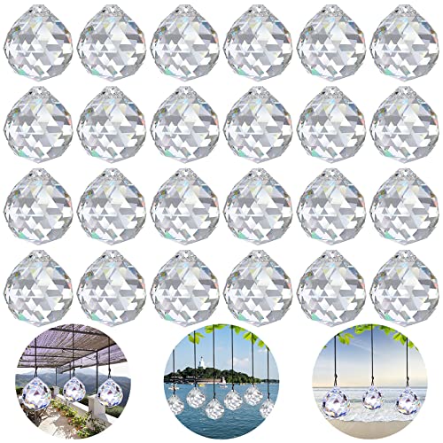 JOKILY 24 stycken kristallglas prisma, kristallkula hängande dekoration, kristallregnbåge Kristallhänge dekoration, kristaller att hänga upp ljuskronor kristaller som dekoration för rum lampa trädgård