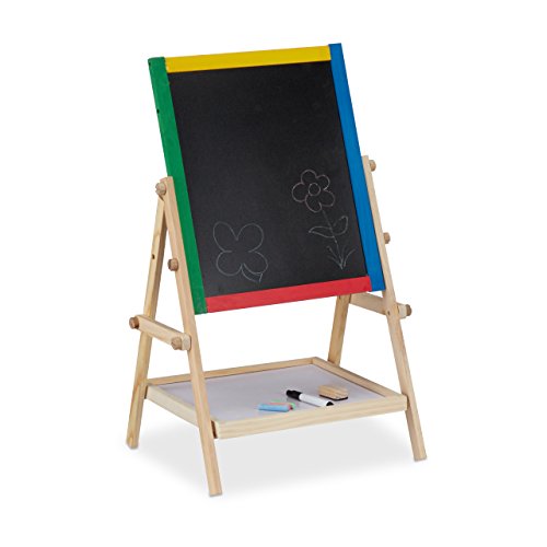Relaxdays Speltavla för barn, barntavla m. krita och markör, magnetisk stativtavla H x B x D: 64 x 40 x 32 cm, flerfärgad