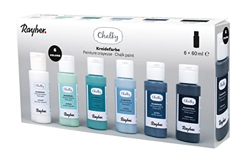 Rayher Chalky-set, 6 färger à 60 ml, blå/gröna toner, kritfärg för utseende i shabby chic, vintage och lantlig stil, 35049990