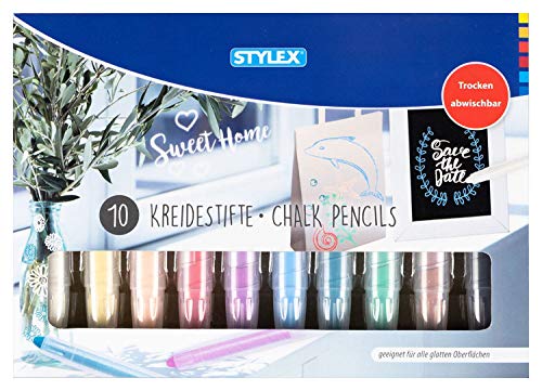 Stylex 28305 – 10 kritpennor för dekorativ målning och design av glas och släta ytor, färger kan torkas av med vatten och torr, perfekt för fönsterbilder