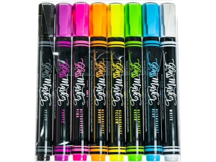The Glowhouse Premium kritmarkörer neon flytande kritpennor 6 mm tvättbara fönstermarkörer set med 8 pennor vändbara spetsar