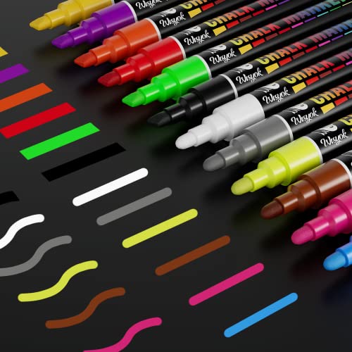 WISYOK Whiteboardpennor 12-pack, Whiteboard Marker Blandade Färger, avtorkbar Whiteboard Märkpennor, raderbara Markörer 6 mm Dubbelspets, Flytande Krita Markörer, Kritpennor För Skola Hem Och Kontor