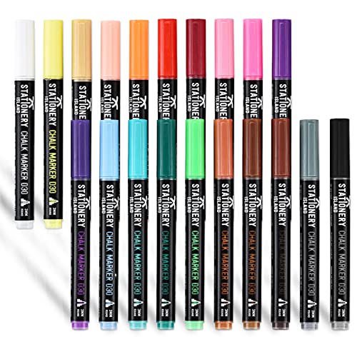 Stationery Island Kritpennor D30 förpackning med 20 blandade färger – 3 mm mejselspetsnibs. Torr Torka bort vätska kritmarkörer. för glas, whiteboards, skyltar och icke-porösa svarta tavlor