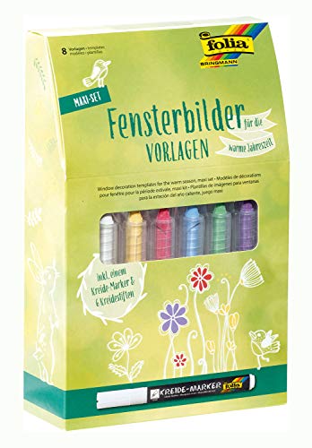 folia 39219 – Maxi-set fönsterbilder för den varma årstiden, inklusive 8 målarfärger, 1 kritmarkör och 6 kritpennor