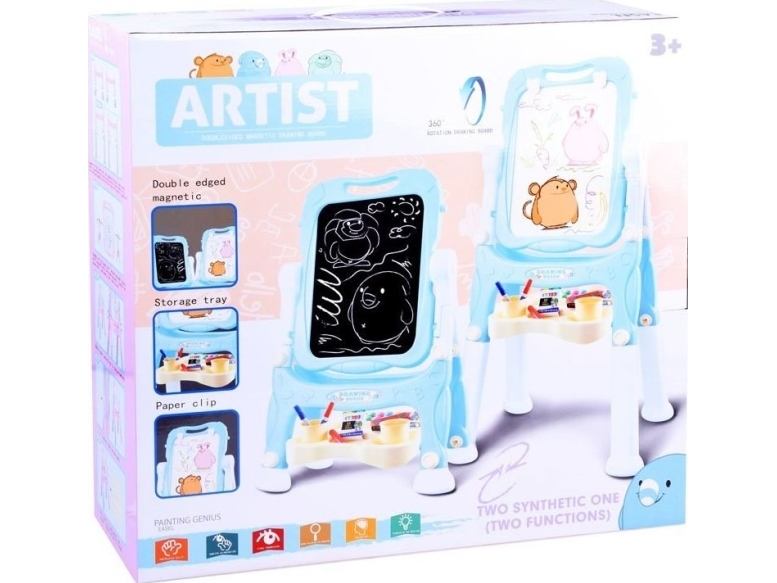 Jokomisiada 2-I-1 Magnetisk Griffeltavla För Barn 3+ Tillbehör + Höjdjustering + Pall + Hylla + Kritpennor