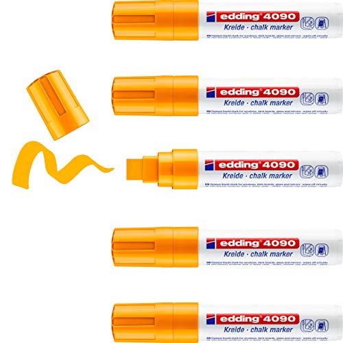 edding 4090 kritmarkör – neonorange – 5 kritpennor – kilspets 4–15 mm – bred kritpenna för avtorkbar tavla – för märkning av fönster, glas, spegel – bordspenna med ogenomskinliga färger