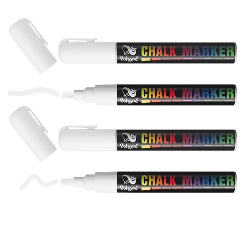 WISYOK kritpenna vit, 4 kritmarkörer, vita väggpennor, blädderblock, vattenlöslig foliepenna, kritpennor för tavla, tvättbar, whiteboard-märkpennor