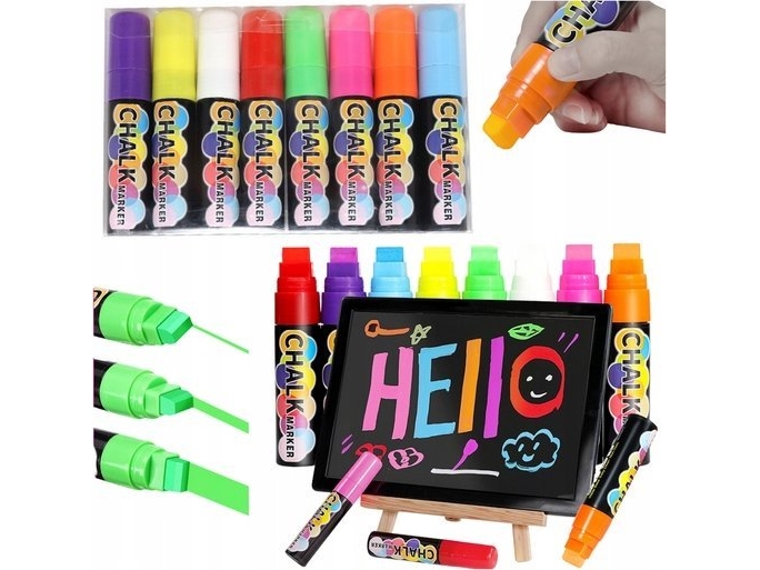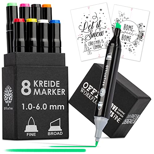OfficeTree 8x Chalk Markers - Kritpennor för Windows - Kritfärg med rundad spets och kilspets - tvillingmarkör i 8 färger torka