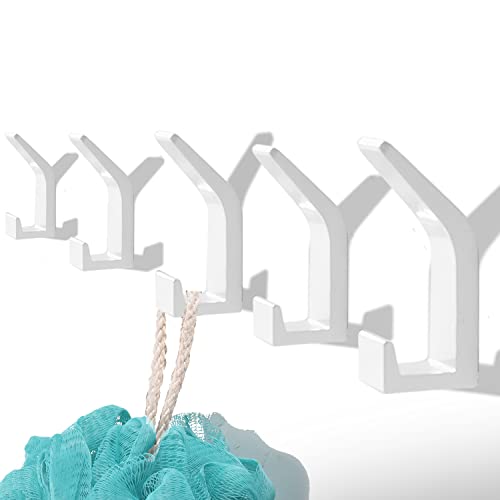 Handdukshållare utan borrning handdukskrok, 5 stycken klädkrokar vägg, rostfritt stål väggkrokar garderobskrok, rostfri krok badrum toalett handdukshållare Coat Hook kök dörr kontor klädkrokar Mörkvit