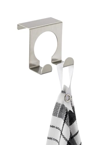 WENKO Dörr-dubbelkrok, krok för handdukar och diskmaskinshanddukar, för upphängning på lådor och skåpdörr, lämplig för badrum och kök, av rostfritt stål, 5 x 5 x 4,9 cm