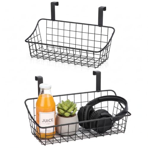 LeleCAT korg med krok gallerförvaringskorg, häng den bakom en dörr eller på ett räcke, över skåpdörren, liten, svart, 2-pack