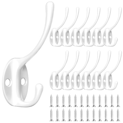 Newaner 12 stycken klädhängare, vintage metall väggkrok med 24 svankilskruvar krok morgonrock väggkrokar för badrum sovrum dörr (vit)
