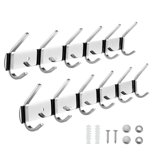 LA BONHEUR kroklist klädkrokar 2 stycken väggkrokar badrum badrum kök dörr garderob garderob krok för kläder, rostfritt stål målning process hållare (6 krokar) 42 cm (silver)