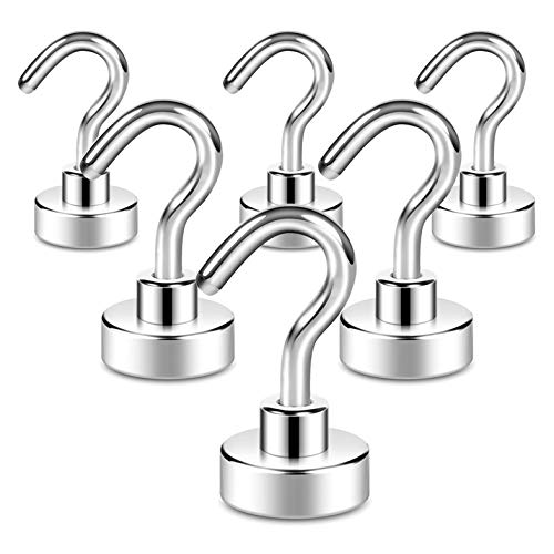Neosmuk Magnetiska krokar, 10 kg + kraftiga magneter med krok för kylskåp, extra stark superkryssningskrok för upphängning, magnetisk hängare för gardin, grill, handduk, tak (silvervit, paket med 6)