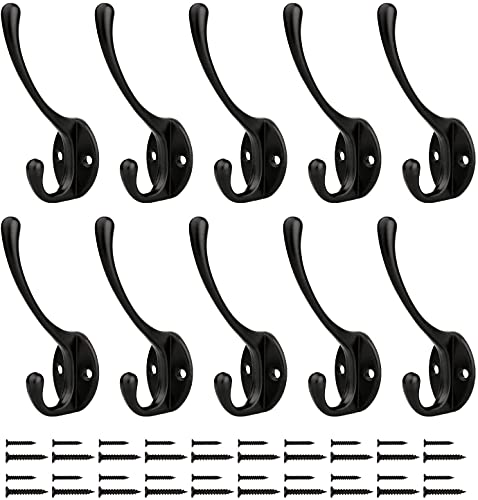 YIHATA 10 st svarta rockkrokar, vintage metall kraftiga kappkrokar med metallskruvar, rock rockar handduk hatt nyckelkrokar, väggmonterad krok för kök sovrum entré
