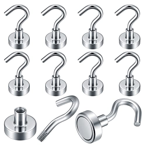 XUIIOSOOKP 10 st. magnetkrokar extra starka, neodymmagnet, starka superstarka magneter med krokar, magnetisk hållare krok för tak, badrum, kök, handduk, garage, kylskåp, silver