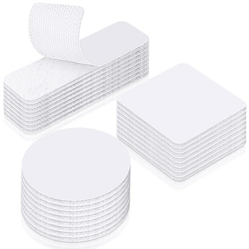 HOMMAND Kardborreband Självhäftande Extra Stark, 24 St Kardborreband Dubbelsidig Krok och Slinga, Kardborreband Lim för Vägg Golv Dörr Plast Metall, Rund/Rektangel/Kvadrat – Vit