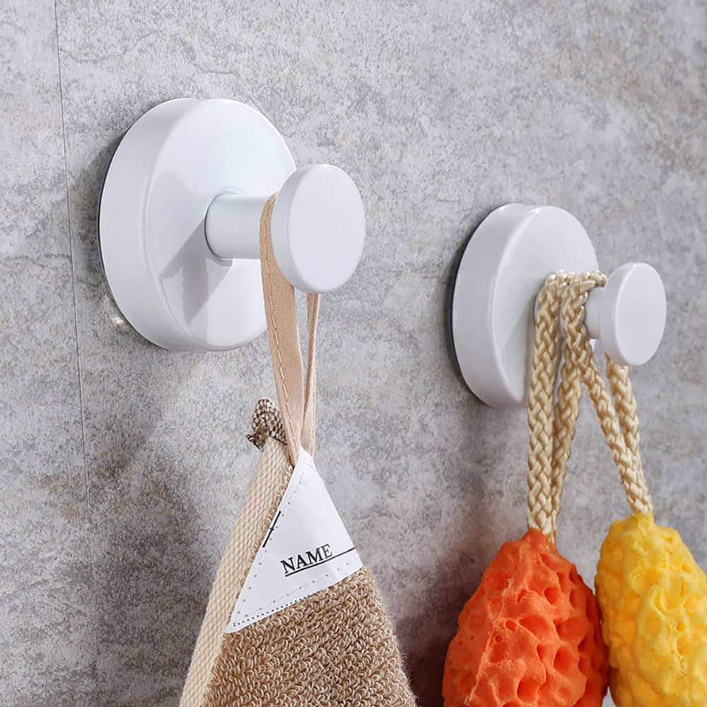 YOHOM Sugkrokar för badrum vakuum sugkopp krok för dusch sugpropp väggkrokar håller upp till 5 kg kraftiga handdukskrokar avtagbar plast sughängare för badrock och luffa, 2 st
