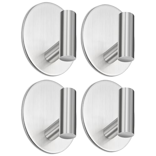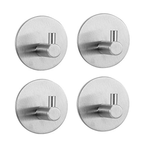 MSV 4 stycken Självhäftande handdukskrok, max 8 kg cirkel badrockskrokar krokar väggkrokar rostfritt stål rostfritt badrum och kök handdukshållare klädkrokar utan borrning – matt silver