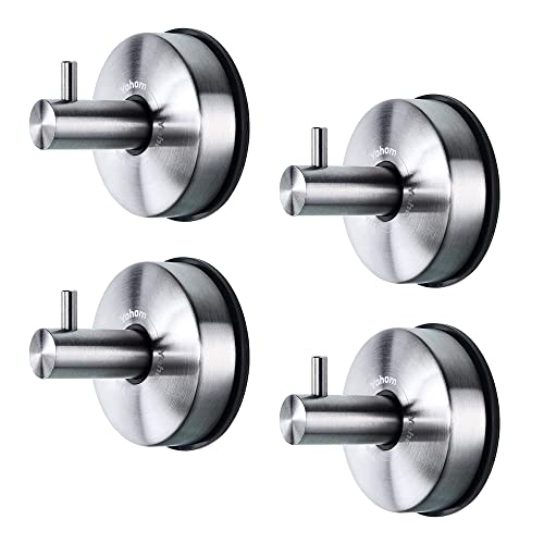 YOHOM Sugkoppskrokar Handdukskrok Rostfritt Stål Vakuum Sugkrok Badrum Handdukshållare Kök Väggkrokar Självhäftande Krokar Utan BorNycklar Väskor Silver 4 st