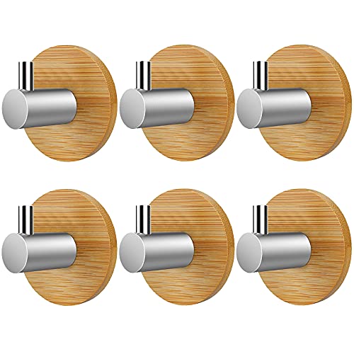 Atuful självhäftande krokar trä rostfritt stål handdukshållare bambu handdukskrokar krokar självhäftande handdukskrokar för badrum kök vardagsrum kontor (6 stycken)