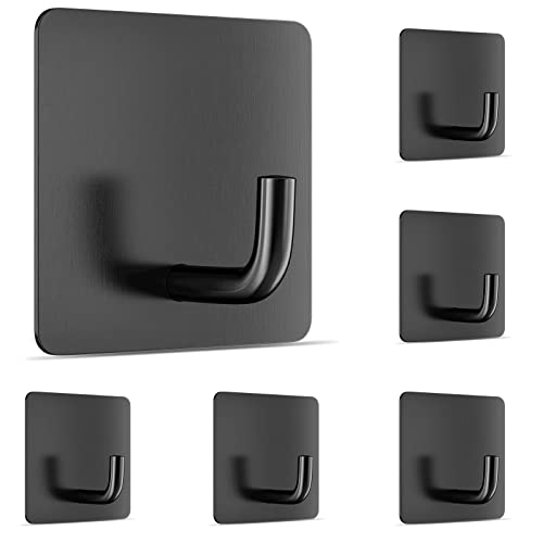 Newaner 6 stycken handdukskrokar, väggkrokar i rostfritt stål, krokar självhäftande badrum och kök handdukshållare klädkrokar utan borrning för hushåll, kök, badrum, kontor, skåp (svart)
