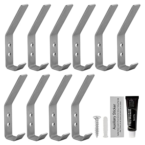 Swawis 10 stycken väggkrokar krokar rockkrokar klädkrokar rostfritt stål 142 x 20 mm hattkrokar garderobskrokar handdukskrokar borrmontering/självhäftande montering krokar universalkrokar för badrum