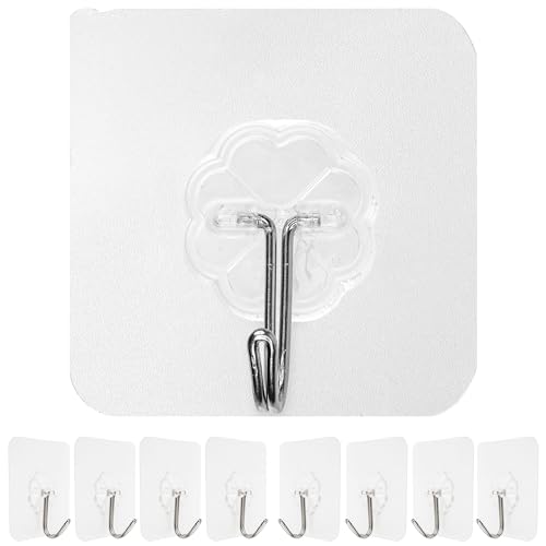 Självhäftande Krokar, 8 par, i Transparenta, 60 x 60 mm självhäftande yta, tvådelad multifunktionell krok, väggkrokar för upphängning i badrum, kök, självhäftande väggfäste, fästkrok för duschkar