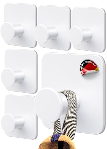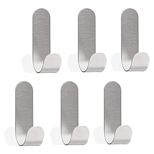 SEBSON Självhäftande handdukshållare set om 6 – självhäftande krokar i rostfritt stål, handdukskrokar för badrum, kök, garderob – väggkrok 60 x 18 x 33 mm silver