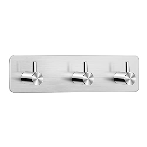 Aikzik handdukshållare utan borrning, max 8 kg handdukskrok badrum rostfritt stål, självhäftande krokar klädkrokar självhäftande, perfekt för badrum toalett kök kontor, silver