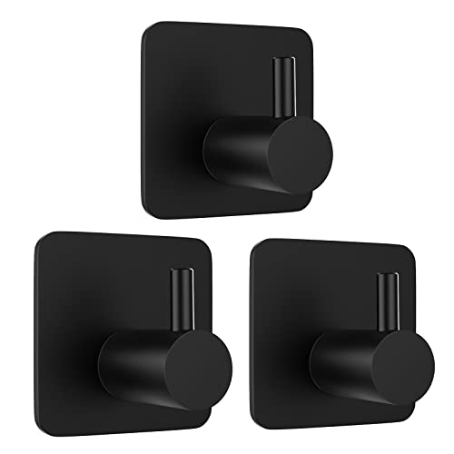 JOPHEK handdukskrokar 3 stycken, krokar självhäftande, badrum och kök handdukshållare, klädkrokar, utan borrning, för hem, kök, badrum, kontor, svart