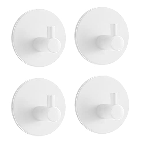 MSV 4 stycken Självhäftande handdukskrok, max 8 kg cirkel badrockskrokar krokar väggkrokar rostfritt stål rostfritt badrum och kök handdukshållare klädkrokar utan borrning – vit matt