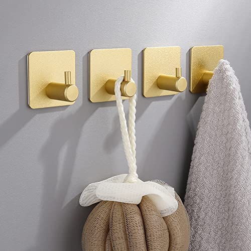 ChangWanna Självhäftande handdukskrokar 3M - 4 stycken guldiga rfyrkantig badrockskrokar, Självhäftande krokar utan borrning, rostfritt stål kökshanddukar, väggkrok, handdukshållare för badrum och kök