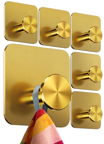 4smile handdukshållare utan borrning, set om 6, guld – badrum handdukshållare av rostfritt stål, moderna självhäftande krokar, hög lastkapacitet – vattentäta krokar för badrum, krokar självhäftande