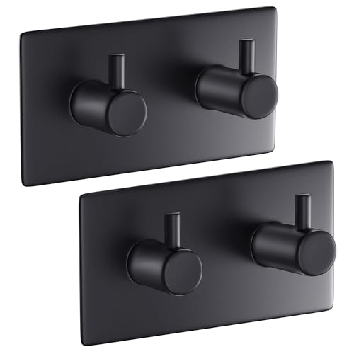 Aikzik handdukshållare utan borrning, vattentäta självhäftande krokar, krokar som väggkrokar, handdukskrokar rostfritt stål för badrum och kök, svart