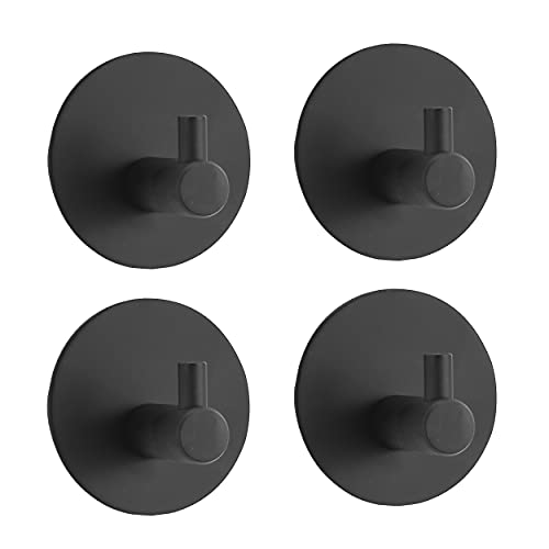 MSV 4 stycken Självhäftande handdukskrok, max 8 kg cirkel badrockskrokar krokar väggkrokar rostfritt stål rostfritt badrum och kök handdukshållare klädkrokar utan borrning – svart matt