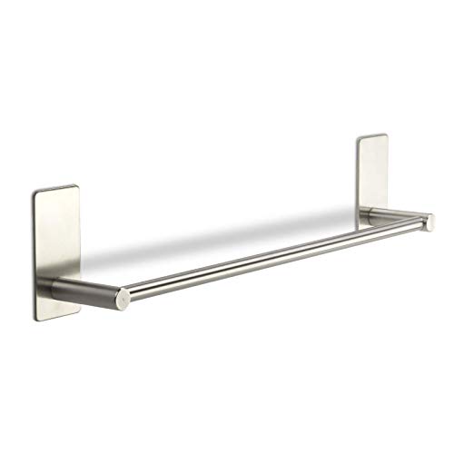 JS Handduksskena handduksstång badrum utan borrning tvåarmad handduk stång badrum dubbelt rostfritt stål SUS304 badhanddukshängare självhäftande 60 cm väggmontering borstad 2 krokar