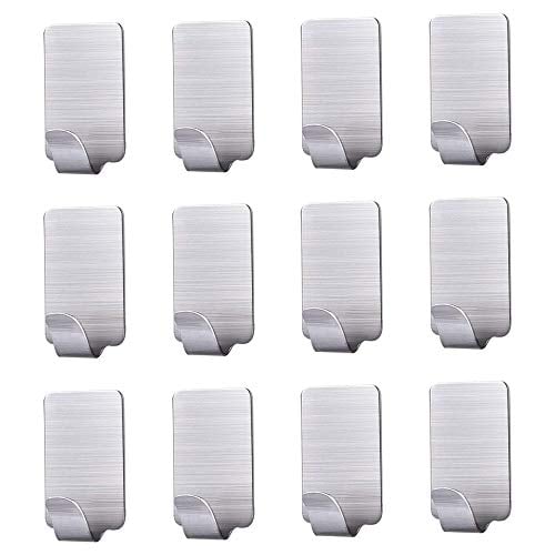 Karrong Krokar Självhäftande Handdukskrokar 12 Stycken, Rostfritt Stål No Drilling Självhäftande Krokar Väggkrokar för badrum Kök Badrum Toalett, Silver