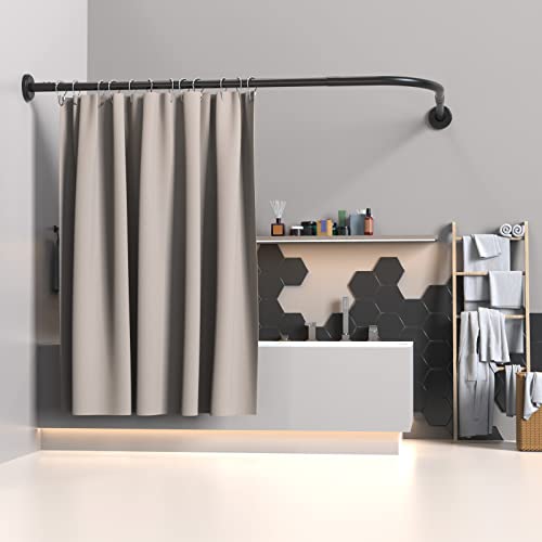 Duschgardinstång L-formad borrning måste duschgardin vinkelskenor, justerbart rostfritt stål 70-100 x 110-170 cm duschstång hörn med 18 delar krokar, för badkar badrum omklädningsrum