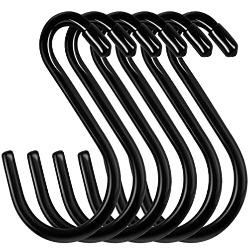 Baoswi 10-pack stora kraftiga S-krokar 15 cm svart gummibelagt metall S-krok för upphängning, halkfri vinylbelagd garderob S-krokar anti-rost krokar för kök badrum sovrum kontor