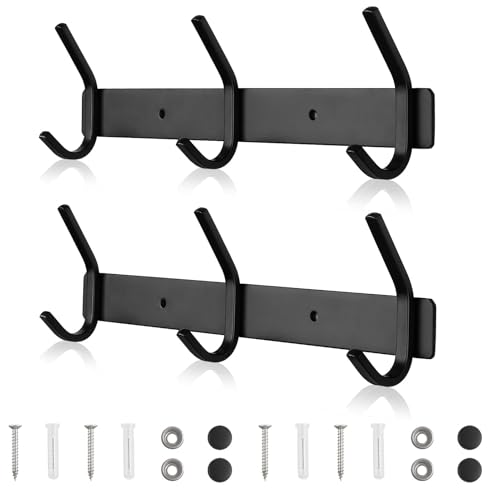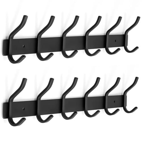 YUNISS Väggmonterad klädhängare i rostfritt stål, klädhängare med 6 krokar för sovrum, badrum, kök (svart, 6 krokar, 2 stycken)