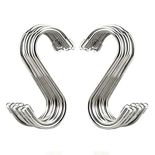 20-pack S-formade krokar rostfritt stål metallhängare hängande krokar för kök, arbetsbutik, badrum, trädgård