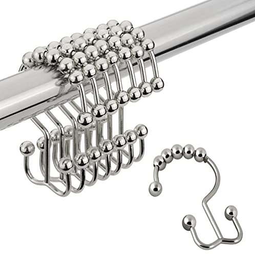 DadyMart Duschdraperi krokar rostbeständiga duschdraperiringar metall dubbla glidrullar duschkrokar för badrum duschdraperistänger gardiner, set med 12, nickel