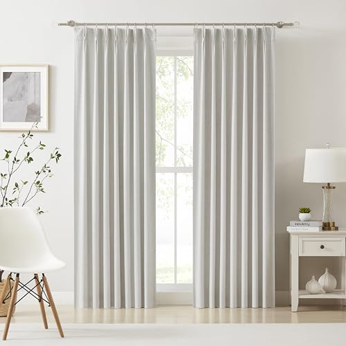 MAIHER Extra breda gardiner nypa veckade, lätt filtrering falskt linne textur halvgenomskinliga gardiner 243 cm längd för vardagsrum nypa veckgardiner med krokar (1 panel, 100 B x 96 L)