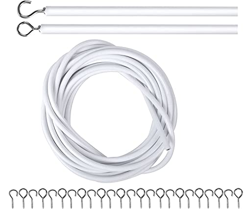 10 m gardintråd vit plastbelagd gardinrep med 25 par skruvtillbehör och krokar, för gardinstängare gardiner duschdraperier