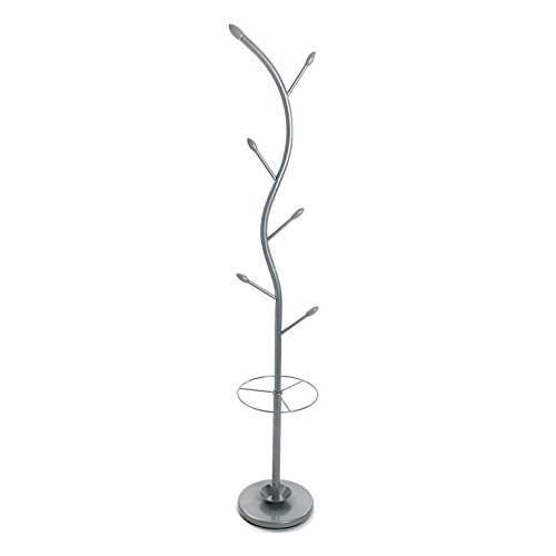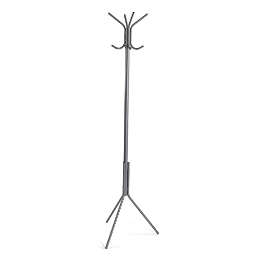 Versa Swindon golvstående klädhängare idealisk för hall eller entré, med 9 krokar eller hängare för kläder eller väskor för hall, mått (H x L x B) 185 x 32 x 32 cm, metall, färg grå