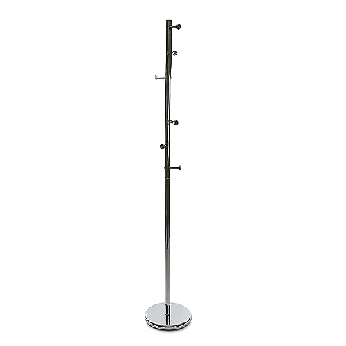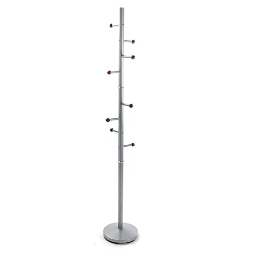 Versa Swindon Minimalist Standing Coat Rack, med 9 krokar eller galgar för kläder eller väskor för hallen, mått (H x B x D x H) 185 x 30 x 30 x 30 cm, metall, färg Silver