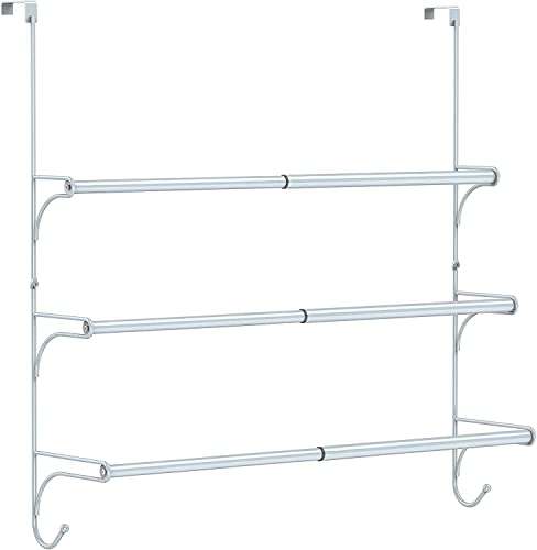 Handduksstång med 3 stänger ovanför dörren – justerbar handdukshållare för badrum utan borrning kan monteras – hängande handduksstång med 2 krokar för förvaring av handdukar, kläder – silver