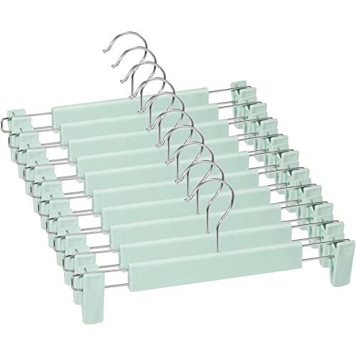 Lamitocs 10-pack kjolhängare, byxhängare med klämmor, 360° vridbara krokar platsbesparande hängare för byxor, kjolar, kläder, jeans, ljusgrön
